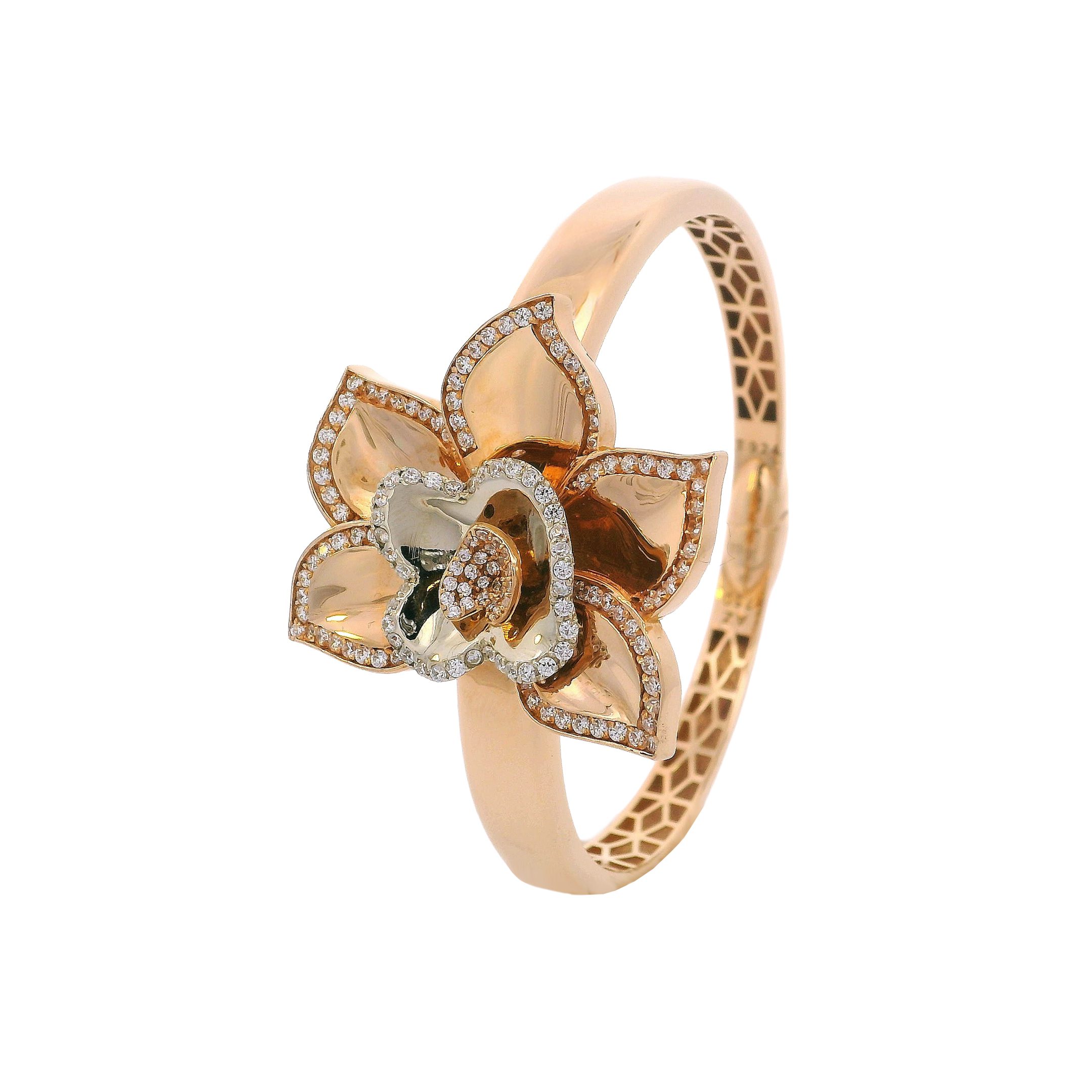 Floral Bloom Gold Bangle A stunning 18k gold bangle featuring a sparkling floral motif with intricate detailing, perfect for elevating any occasion.
