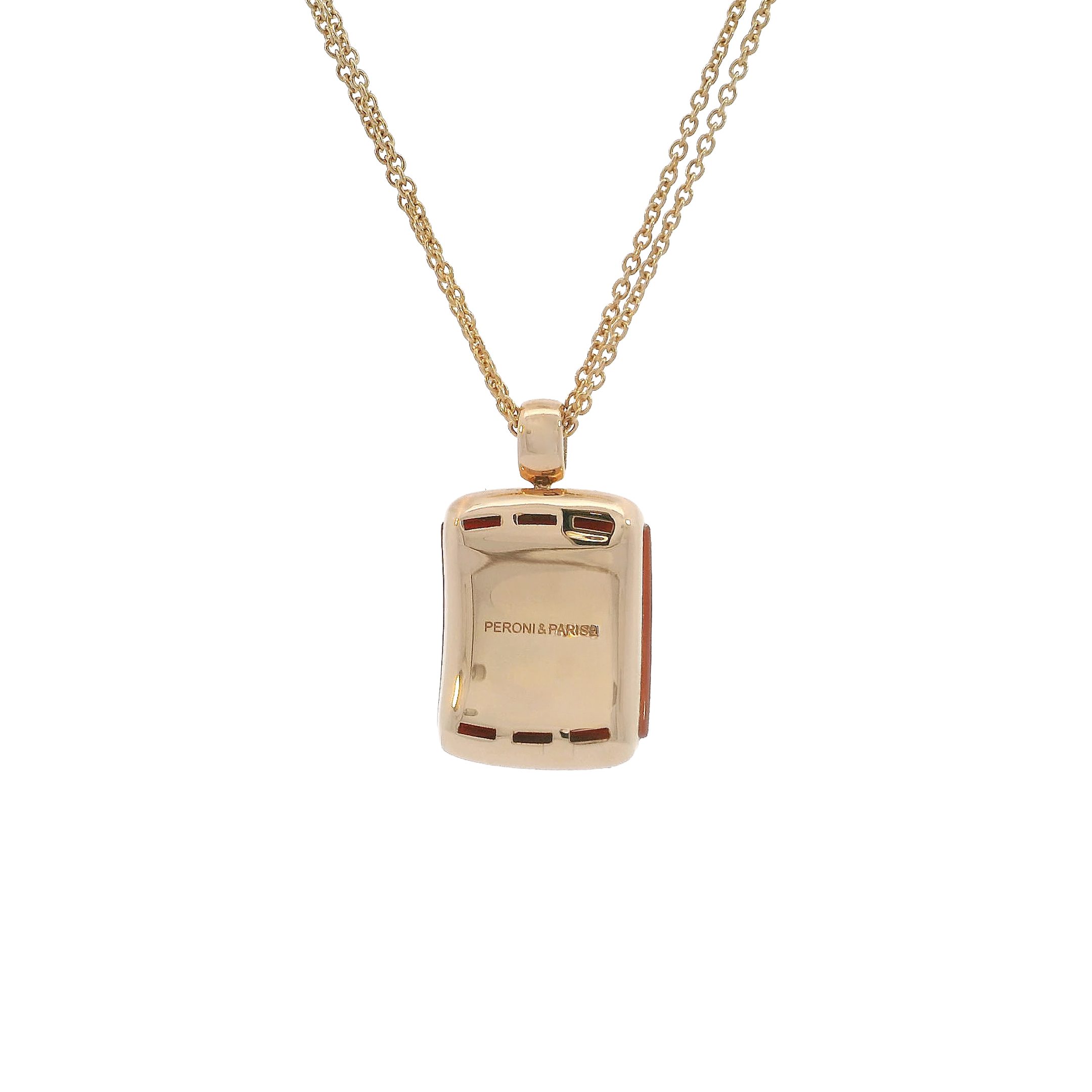 A bold statement piece in 18K gold, featuring a smooth cornelian and mother-of-pearl doublet. The deep crimson hue radiates warmth and vitality, making it a timeless expression of strength and elegance.