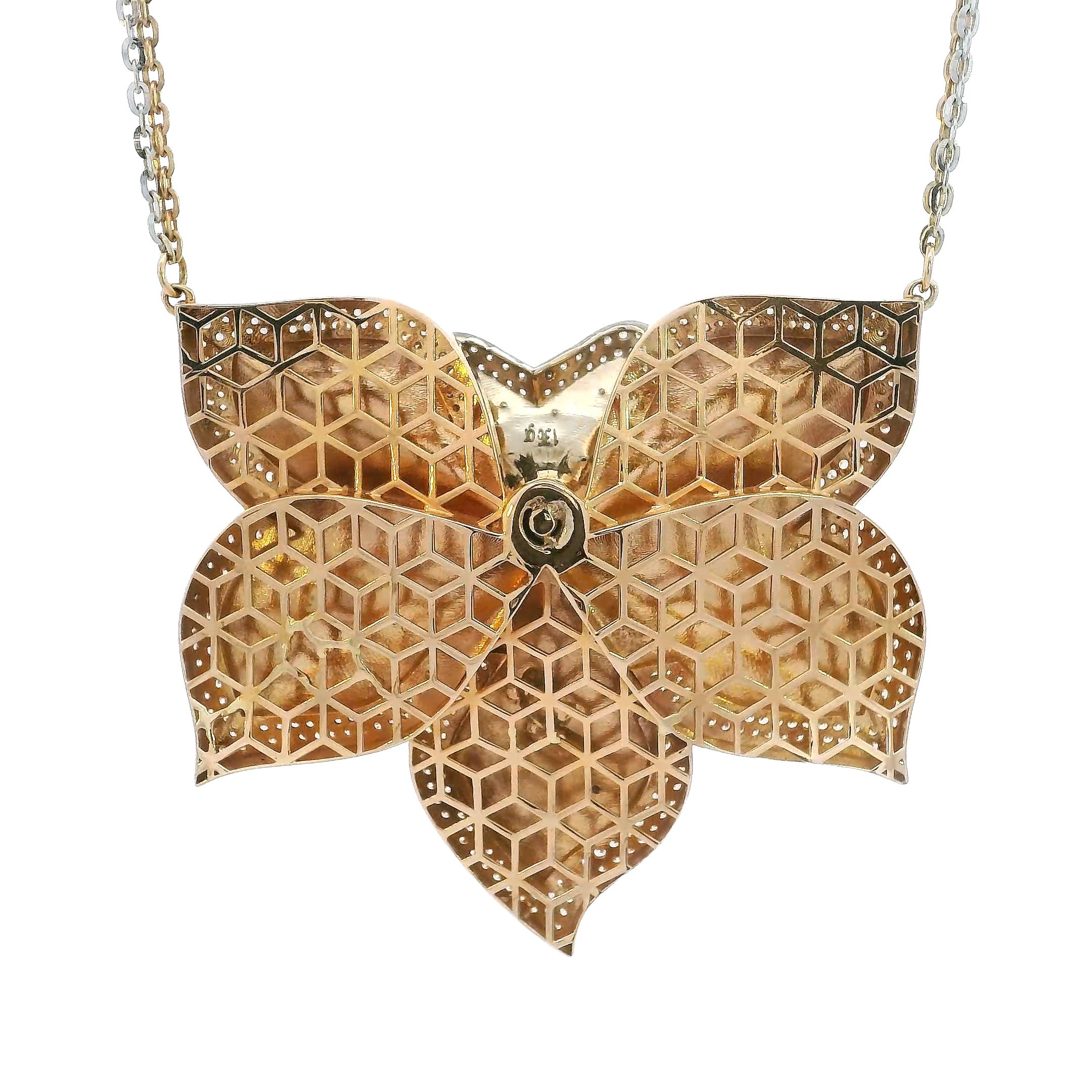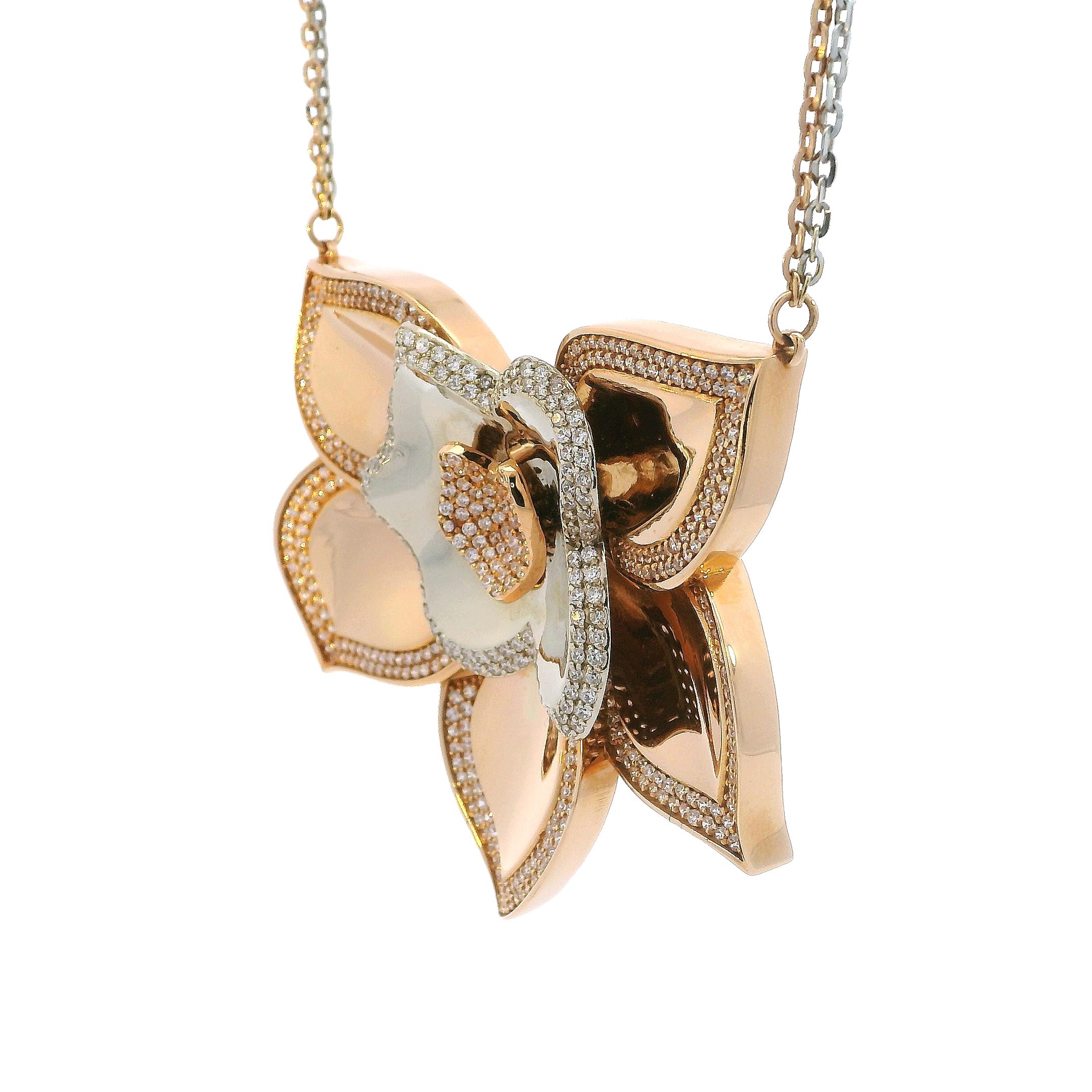 A radiant 18k gold necklace designed in a bold floral motif, accented with shimmering details that bring the petals to life with timeless elegance.