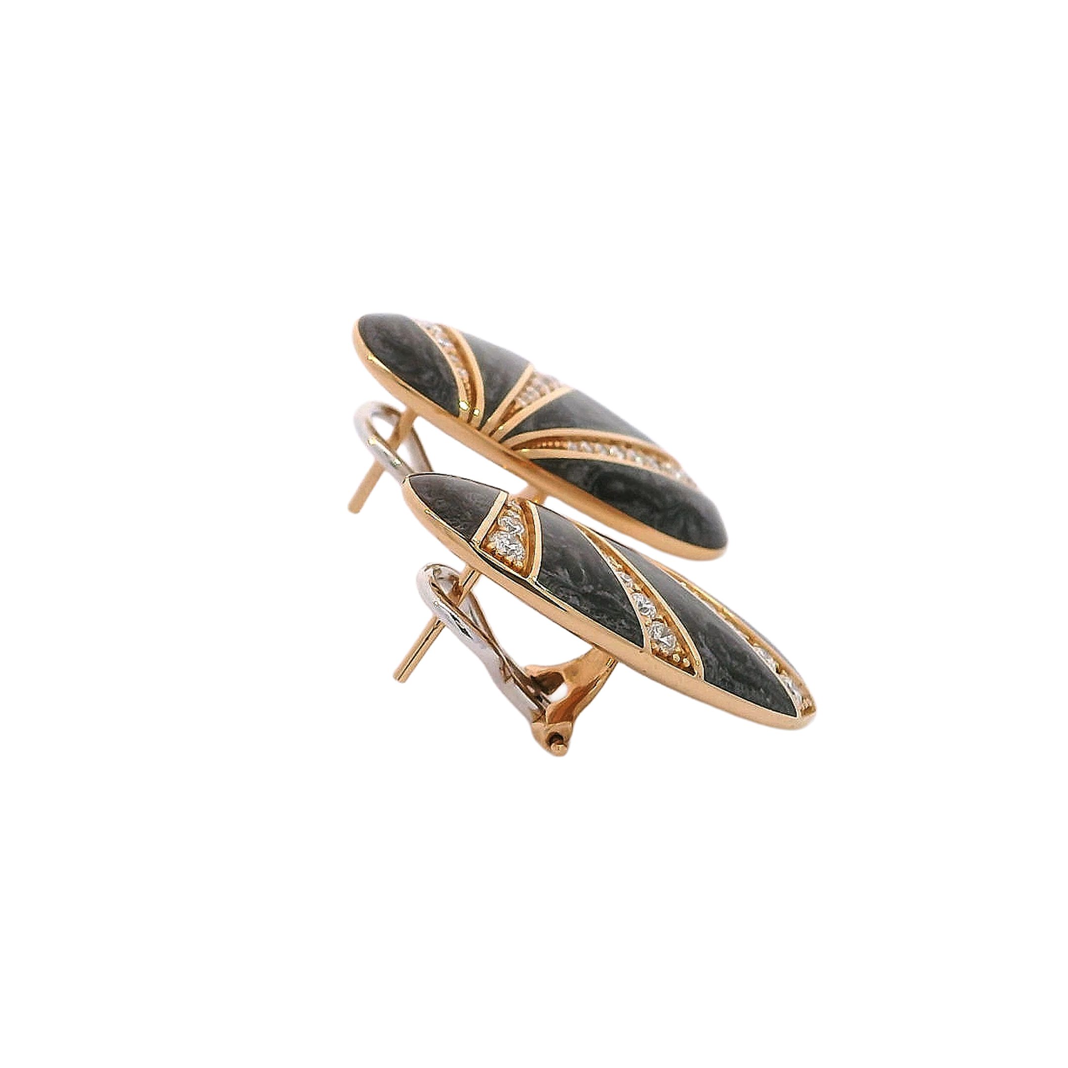 Elegant 18k gold earrings in a sculpted shell design, featuring smooth black onyx inlays. Inspired by the sea, this piece balances the mystery of midnight tones with the luminous warmth of gold.