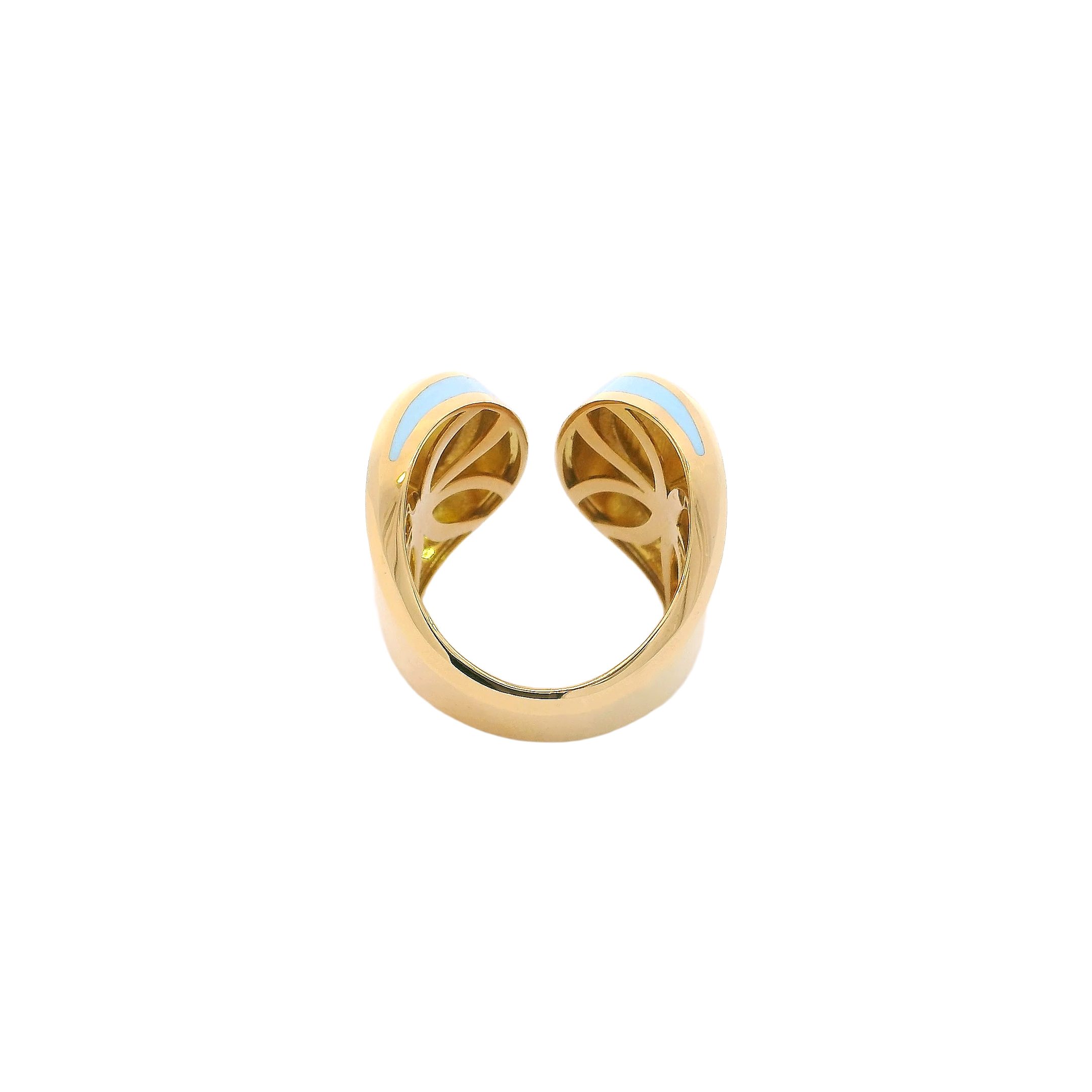 Ocean Mist Gold Ring A sleek 18k gold ring accented with soft sky-blue details, designed with smooth curves for a contemporary and refreshing look.